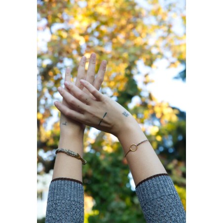 La polsera "MESTRESSA" rígida i ovalada amb el seu disseny senzill i fi, és perfecta per a combinar amb les teves polseres de macramé ja que es realcen tots dos materials. Queda genial col·locant-la en l'avantbraç.